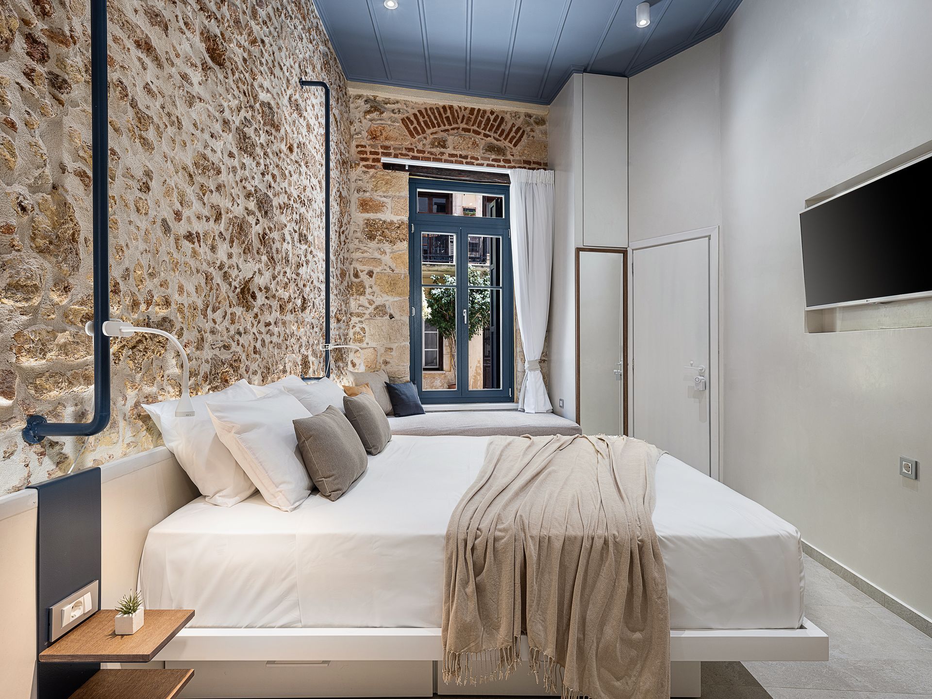 New charming, fully equipped, apartments in a fully renovated building of 14th century. Designed with respect to the stoned walls and the traditional Venetian building style. Situated on the most beautiful pedestrian road, in the heart of the most popular area, the old Venetian port. Restaurants, cafes & shops are available in the area all day long. Just 150m from the sea, this place is ideal for easygoing travellers.