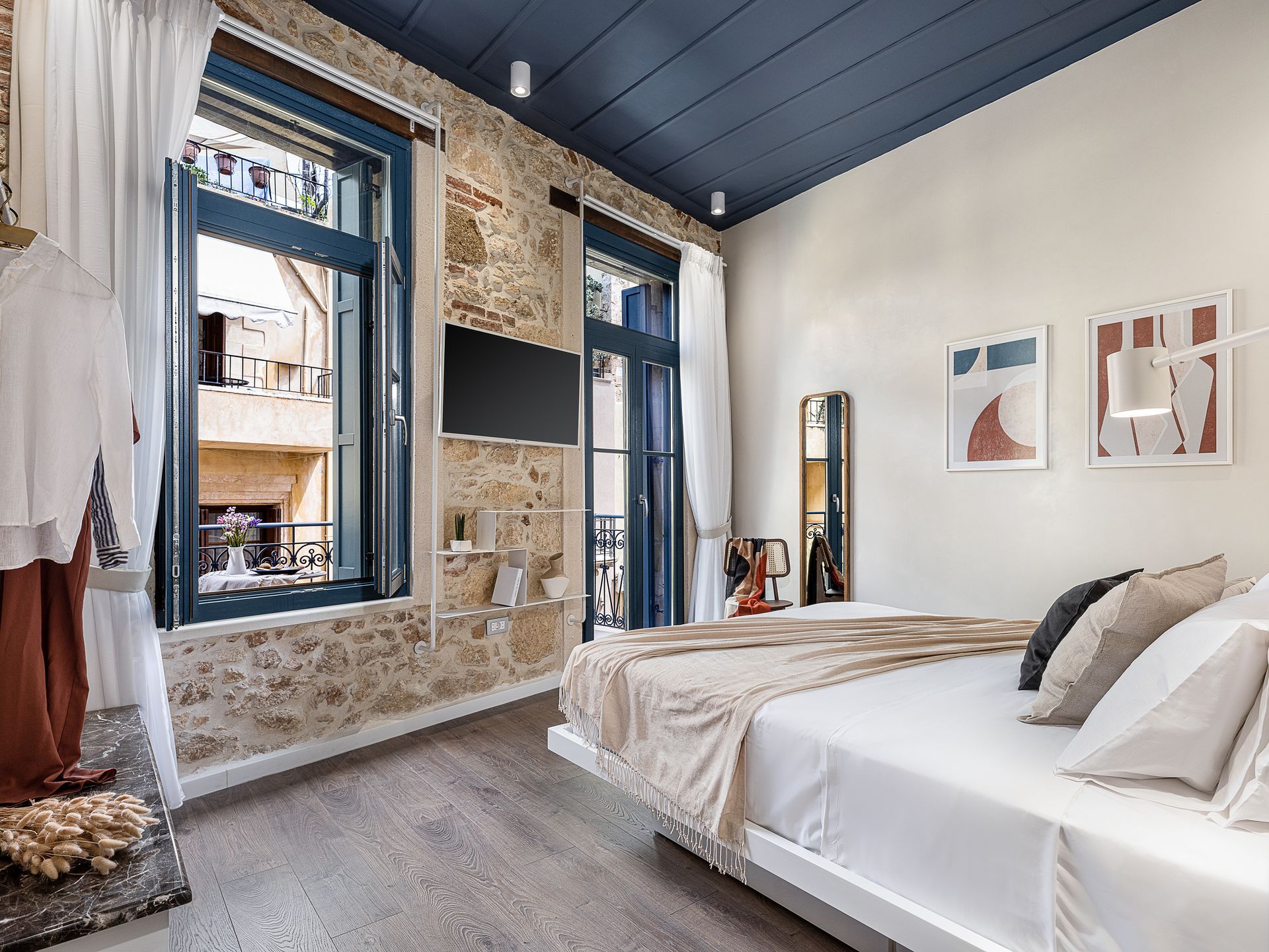 • One unit features its own private balcony, perfect for relaxing moments above the charming streets of Chania.